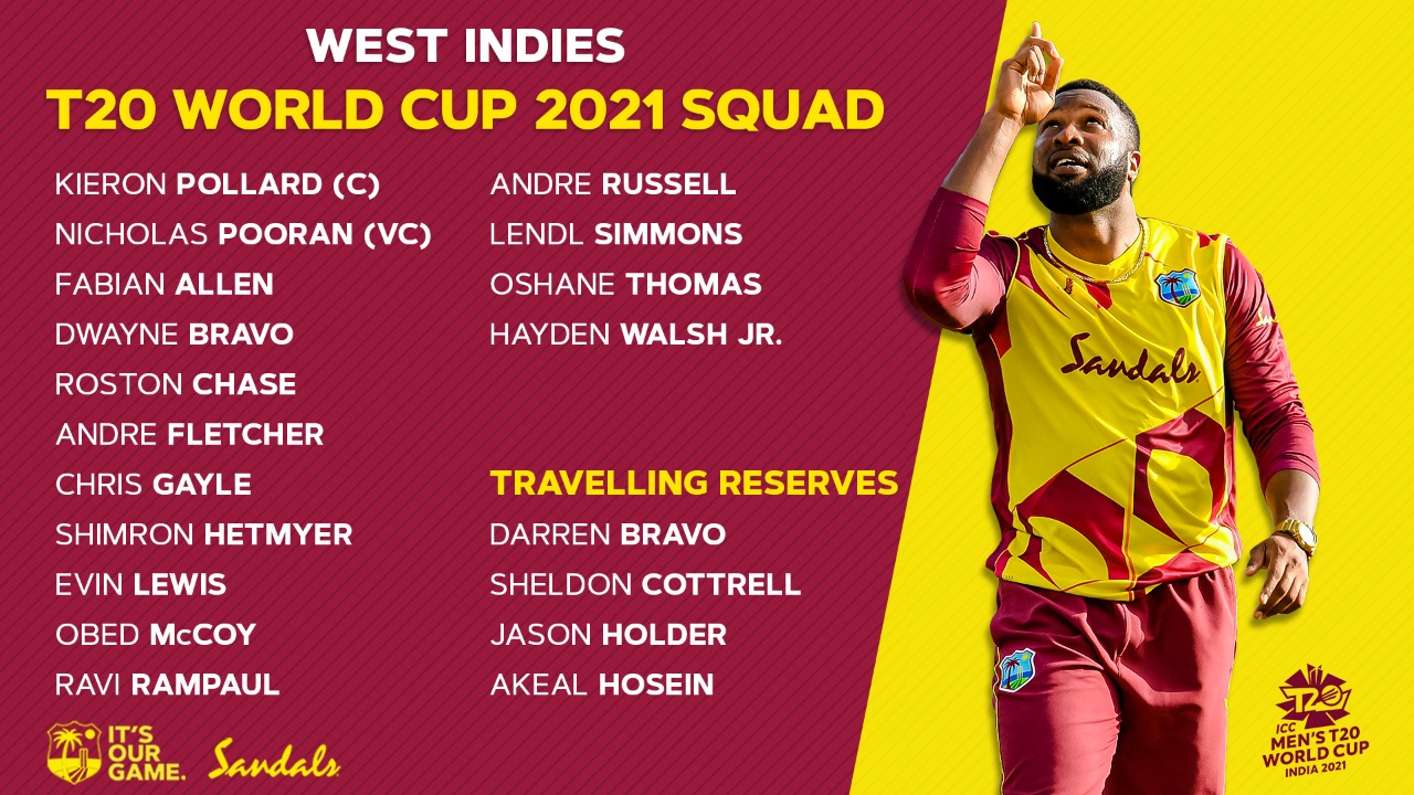 Kieron Pollard Captain Nicholas Pooran Vice Captain Fabian Allen Dwayne Bravo Roston Chase. This years T20 World Cup will be played between 16 cricket teams. Follow Sportskeeda for the latest updates on T20 World Cup 2021 Players List injury updates.