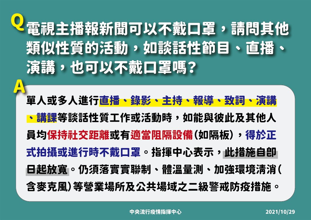 现在肯定都要戴口罩现在因为疫情刚过肯定是还要都要再戴着 群众 我们还需要配戴好口罩并且虽然解封但还没有解防我们需要有一定的防患意识没有规矩不成方圆我们需要有一定的规矩来规定的这些当然是要配合好才能共同抗疫. 口罩規定鬆綁近兩周討論聲量圖Social Lab社群實驗室提供 10月5日口罩規定鬆綁 台北市長柯文哲提前引爆網友討論. 但從 11 月 2 日起將進一步鬆綁防疫管制措施包括 ktv 唱歌不用戴口罩.